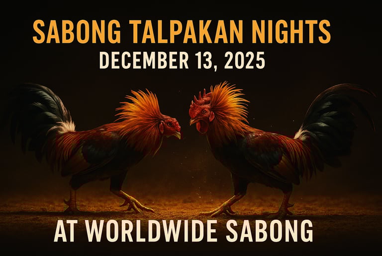 Sabong Talpakan Nights captures the essence of evening sabong—focused, intense, and uncompromising. It’s an event tailored for fans who appreciate discipline, strategy, and decisive outcomes. For those tracking elite sabong action, this December 13, 2025 talpakan at WORLD WIDE SABONG stands as a must-watch night on the global sabong calendar.